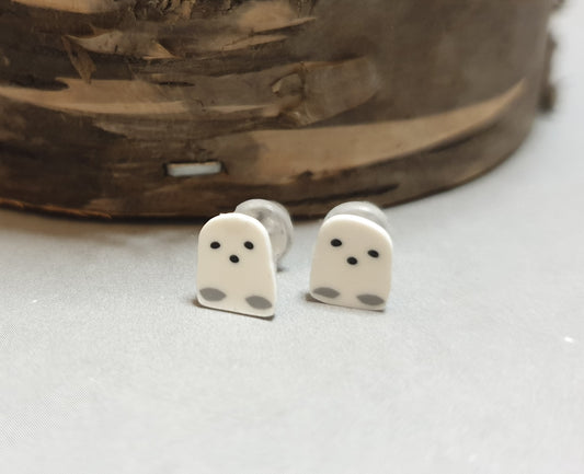 Tiny Ghost Stud Earrings. Allergy Free Plastic Posts. Halloween Studs
