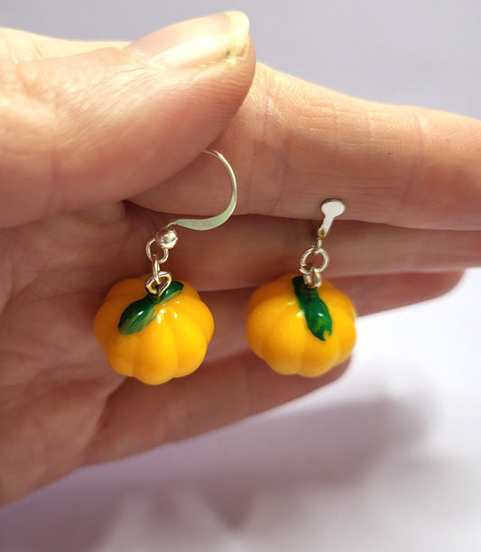 3D Pumpkin Earrings. Halloween Jewellery. Nickel Free Wires or Clip On.