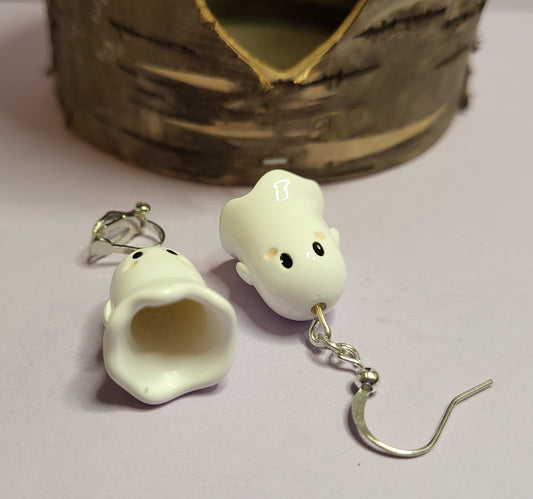 Cute 3D Ghost Earrings. Halloween Earrings. Nickel Free Wires or Clip On