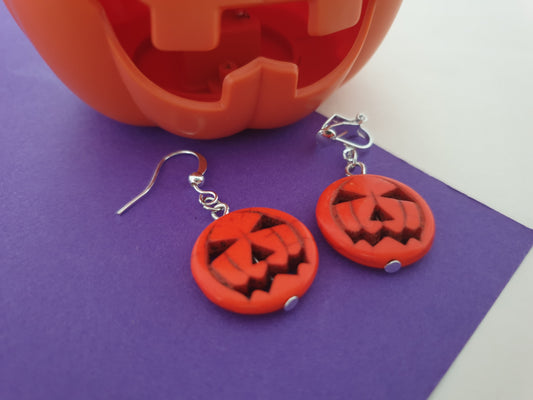 Jack O'Lantern Pumpkin Spooky Earrings. Halloween Jewellery with Allergy Free, Nickel Free, Hypoallergenic Wires or Clip On Earrings