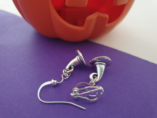 Silver Witches Hat Halloween Earrings. Hypoallergenic, Allergy Free, Nickel Free Earrings, Clip On Earrings