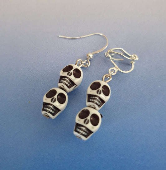 Beaded Skull Earrings. Halloween Earrings. Goth Earrings. Skull Jewellery. Skull Drop Earrings. Nickel Free Earrings. Clip On Earrings