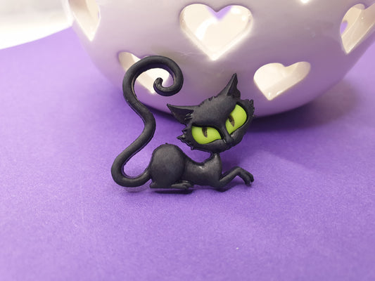 Black Cat Pins. Spooky Pin. Cat Lover Gift. Halloween Jewellery. Halloween Pin. Halloween Costume. Witches Cat. Cat Jewelry, Cat Brooch.