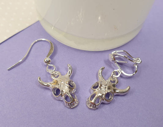 Animal Skull, Skull, Skeleton, Small Skull Earrings. Halloween Clip On Hypoallergenic, Allergy Free Stocking Filler