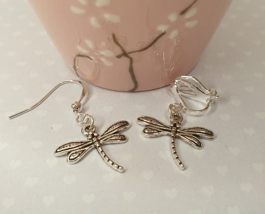 Silver Bee Earrings. Silver Dragonfly Earrings. Silver Spider Earrings. Nickel Free Earrings. Clip On Earrings.