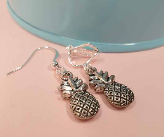 Pumpkin, Pineapples, Pizza Earrings. Food, Fruit, Jack-o-Lantern, Clip On, Hypoallergenic, Allergy, Lead, Nickel Free. Silver