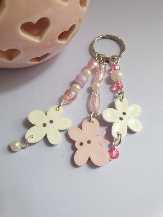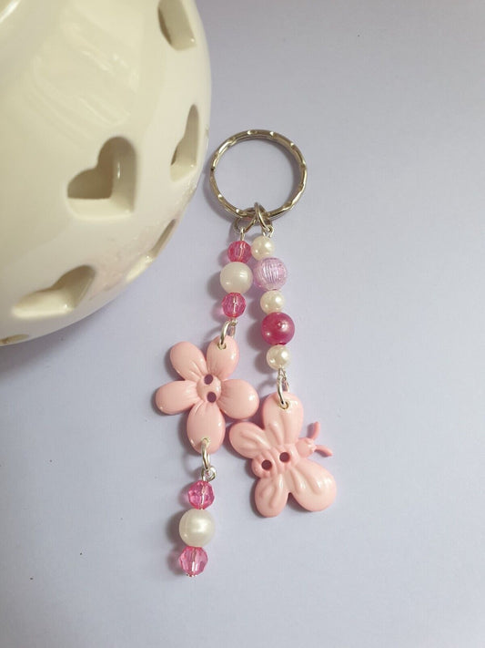 Pink and White Butterfly and Flower Keyring Keychain. Butterfly Lover Gift