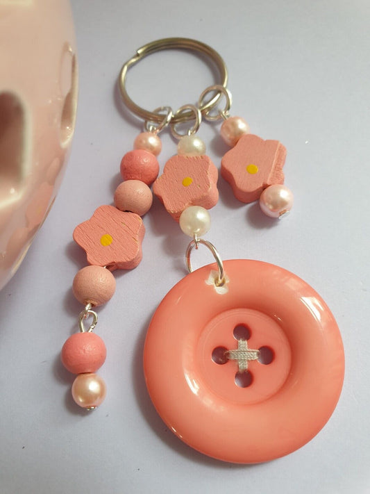 Pretty Peach Keyring Keychain. Large Oversized Button. Peach Flowers. Unusual
