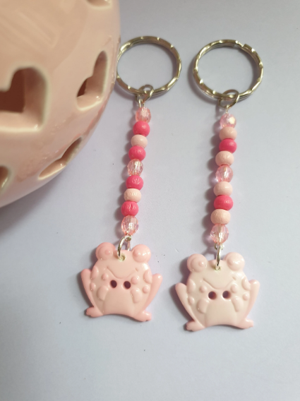 Pink Frog Keyring Keychain. Beaded Keychain. Frog Lover Gift. Froggy Friend