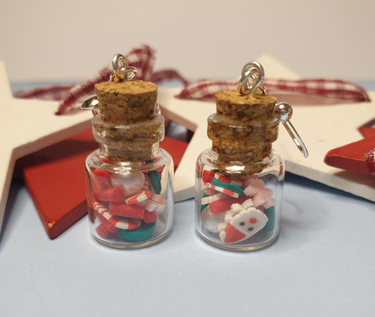 Christmas Candy Jar Earrings. Nickel Free Wires or Clip Ons
