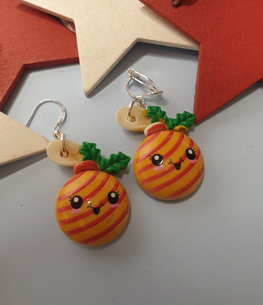 Cute Bauble Earrings. Christmas Earrings. Nickel Free Wires or Clip Ons