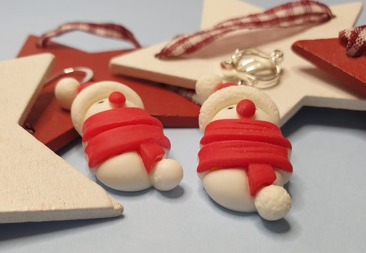 Cosy Snowmen Earrings with Red Scarf. Nickel Free Wires or Clip Ons