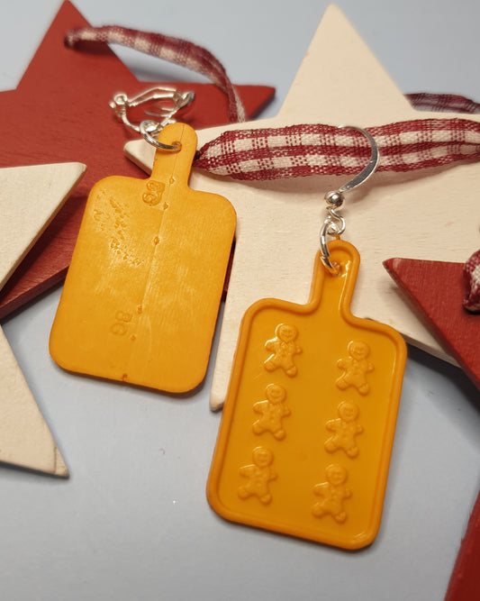Gingerbread Man Cookie Tray Earrings. Quirky. Nickel Free Wires or Clip Ons