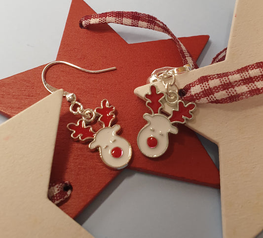 Red and White Rudolph Face Earrings, Nickel Free Wires or Clip Ons