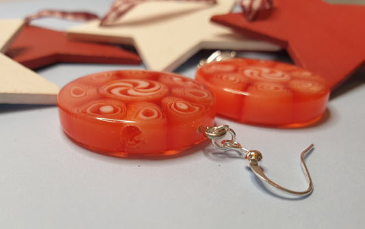 Red Christmas Candy Statement Earrings. Nickel Free Wires or Clip Ons