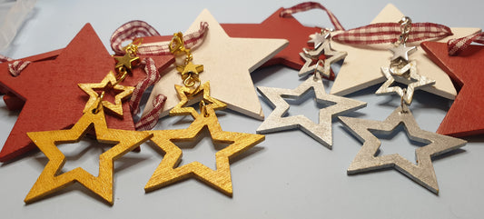 Wooden Triple Star Earrings. Nickel Free Wires or Clip Ons