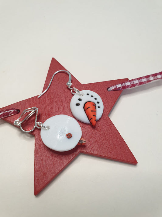 Snowmen Face Earrings. Clip On, Hypoallergenic, Lead Nickel Allergy Free Christmas Winter Festive Seasonal Glitter Stocking Filler, Xmas