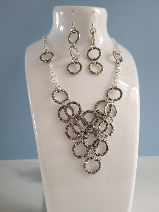 Silver Tone Heart Ring Earring and Necklace Set. One of a Kind