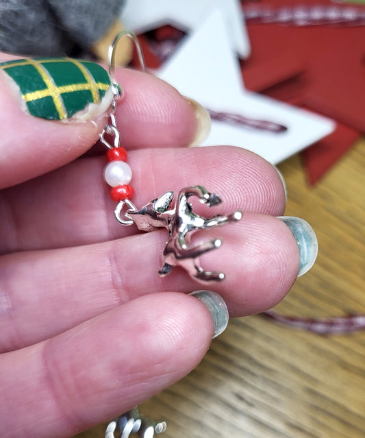 Silver Tone Deer Earrings. Clip on or Nickel Free Wires. One of a Kind