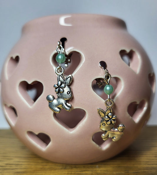 Cute Rabbit Bunny Earrings. One of a Kind. Childrens Earrings. Nickel Free Wires or Clip On