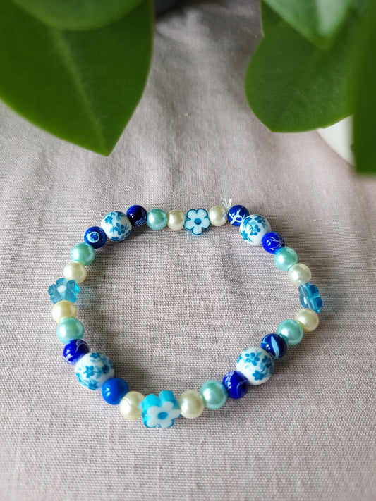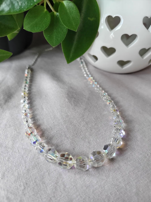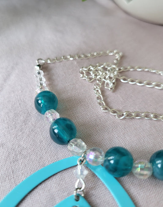 Turquoise and Crystal Beaded Bib Necklace. Upcycled