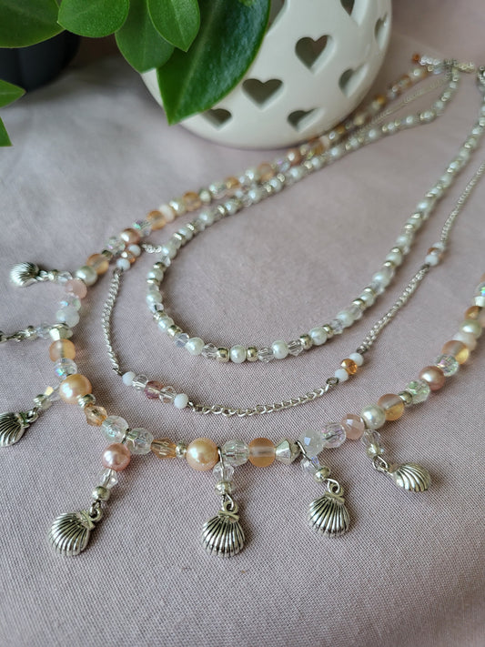 Black and Silver Upcycled Necklace with Dainty Beaded Detail