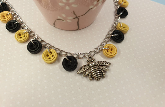 Bee Button Charm Bracelet. Bee Lover Gift. Bumble Bee. Honey Bee. Gift for Her