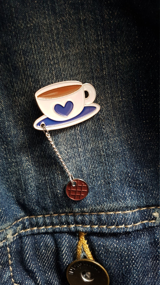 Tea Cup and Biscuit 2 Part Soft Enamel Pin, Food, Cookie, Lapel Pin, Pin Badge, Hat Pin. Tea Lover Mothers day Gift