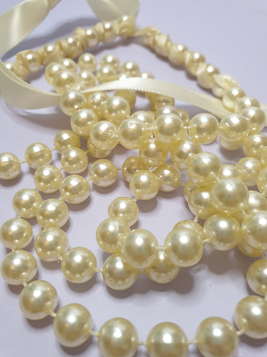 Faux Pearl Necklace with Ribbon Fastening. Recycled, Upcycled and Unique Jewellery