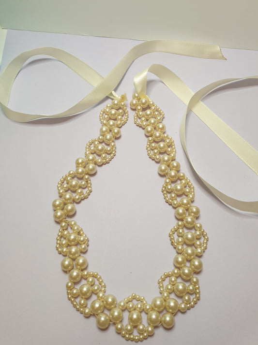 Beautiful Faux Pearl Ribbon Necklace. Upcycled, Recycled, Unique Necklace