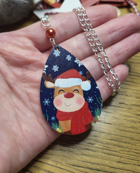 Wooden Rudolph Statement Christmas Necklace. One of a Kind.