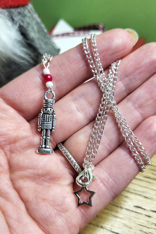Silver Tone Nutcracker Christmas Necklace. One of a Kind.