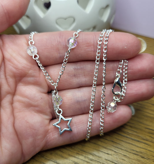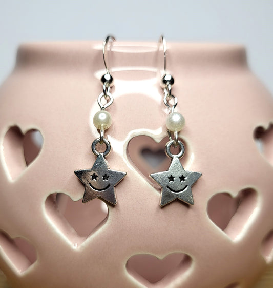 Smiley Star Silver Tone Necklace and Earrings Set. Limited Edition. Childrens Jewellery. Nickel Free Wires or Clip On