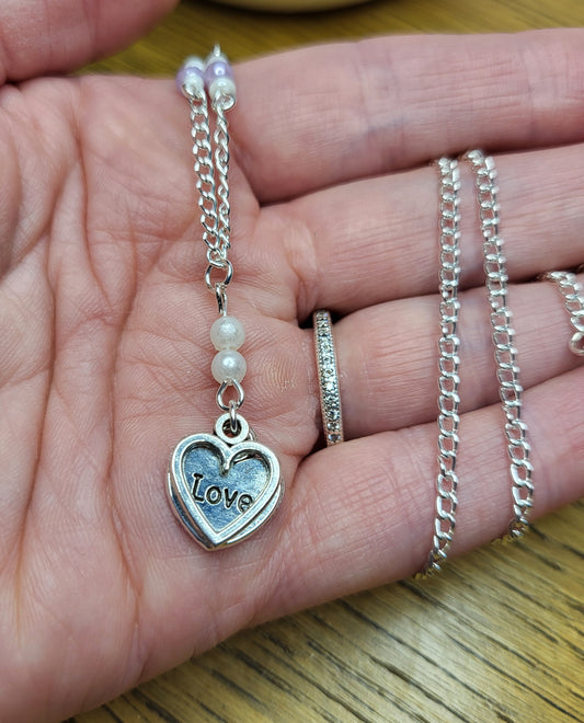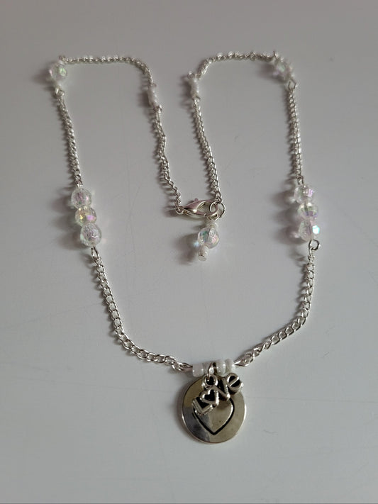 Silver Tone 'Love' Necklace with Beaded Detail. One of a Kind