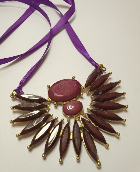 Purple Statement Ribbon Tie Bib Necklace. Recycled Piece. One of a Kind