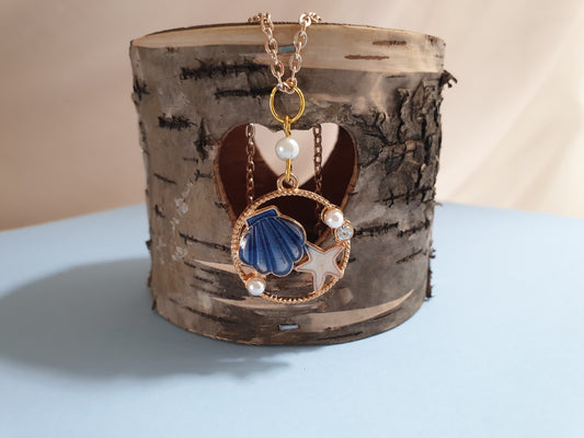 Sea Shell Circle Pendant Necklace with Faux Pearl Detail. Summer Necklace. Shell Necklace. Shell Jewellery. Beach Necklace