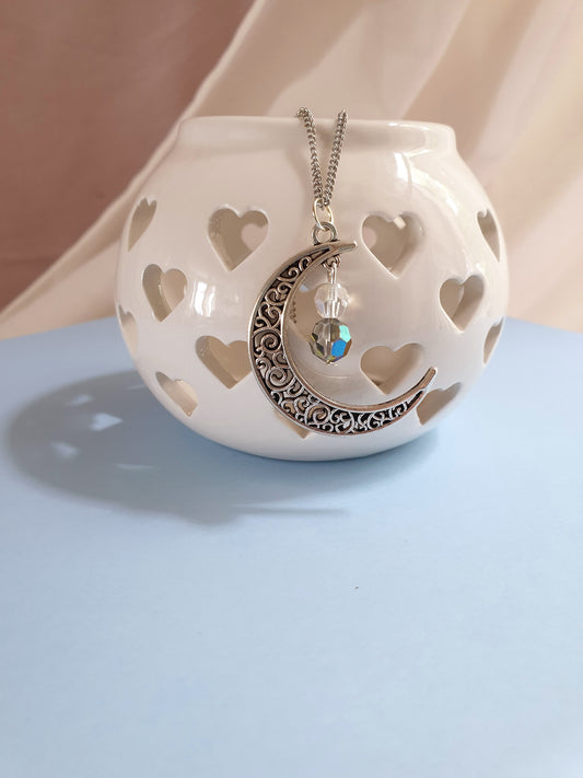 Silver Tone Moon Pendant Necklace with Beads. Moon Jewellery, Moon Jewelry, Crescent Moon