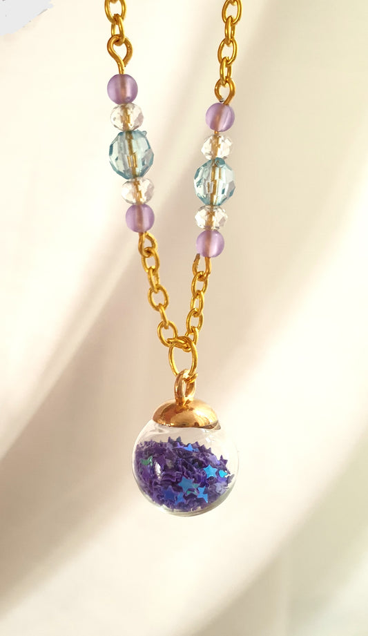 Blue, Green and Purple Star Shaker Pendant Necklace. Gold Tone. Fairy Necklace. Magical Necklace. Mermaid Necklace