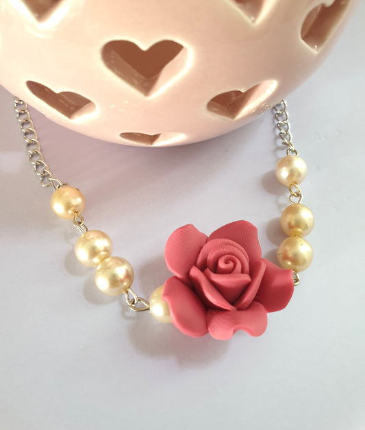 Large Dark Pink Rose Necklace and Earrings. Flower Necklace. Flower Earrings. Hypoallergenic, Nickel Free, Clip Ons