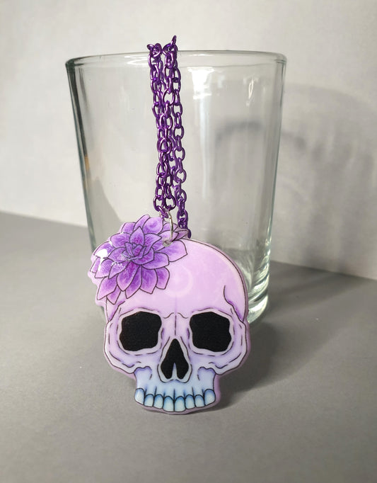 Purple Skull with Flower Pendant Necklace. Spooky Halloween Necklace. Quirky Necklace
