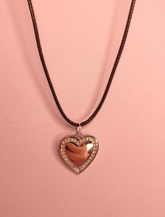 Sparkle Heart Pendant on Black Cord Necklace. Silver Love Heart