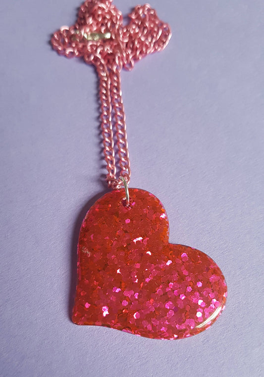 Glitter Heart Necklace Pendant and Chain Pink, Blue, Silver, Gold, Red, Love, Valentine's Day Gift