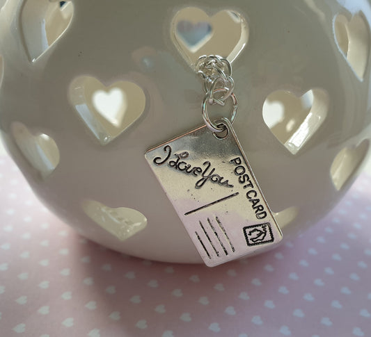 Silver 'I Love You' Postcard Pendant with Chain. Romantic, Valentine's Day Gift, Necklace
