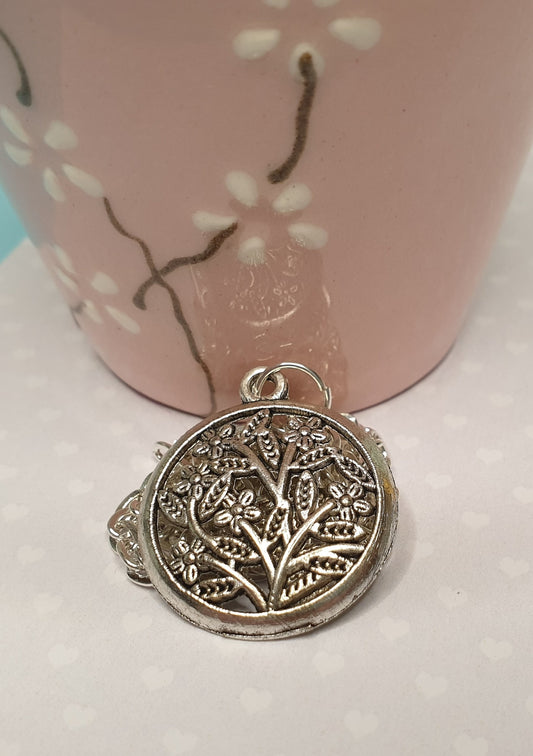 Forget Me Not Circular Pendant and Chain, Necklace. Remembrance, Flowers, Floral, Stocking Filler, Gift