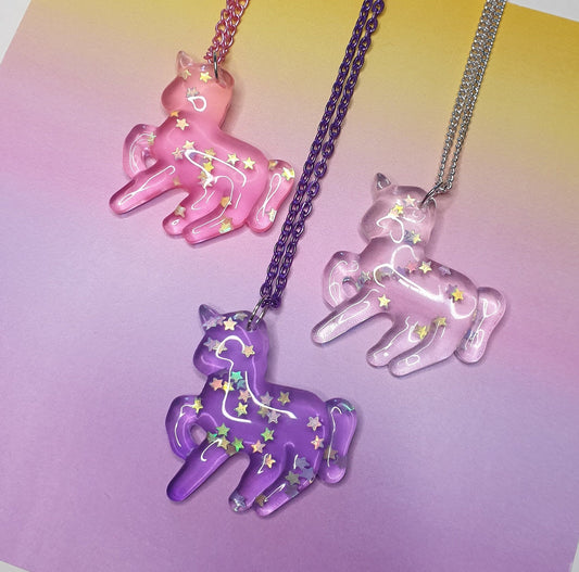 Magical Star Unicorn Necklace Pendant and Chain Fantasy Pretty, Horse, Pony, Magic, Pink, Purple Stocking Filler