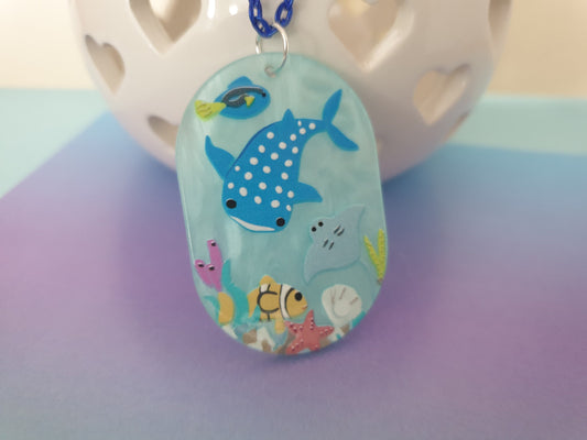 Sealife Pendant with Chain. Whale, Manta Ray, Fish, Coral, Shells. Ocean, Sea, Summer. Gift for Her