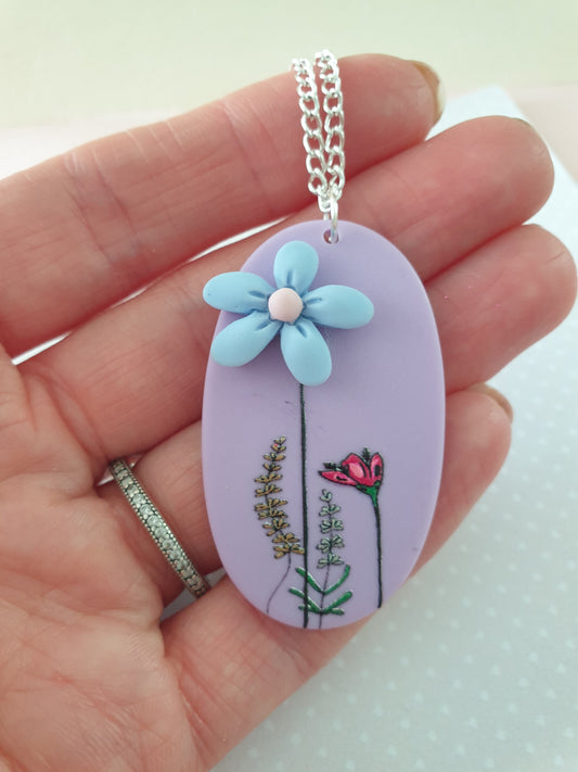 Pretty 3D Flower Necklace. Pendant. Purple and Blue. Mothers Day Gift. Stocking Filler