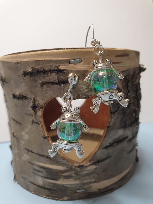 Beaded Frog Earrings. Nickel Free wires or Clip Ons