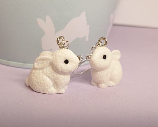 3D White Rabbit Earrings. Hypoallergenic, Nickel Free, Clip Ons. Easter Earrings, Easter Gift