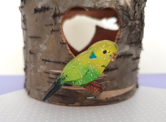 Budgie Pin with Glitter Detail. Budgerigar, Bird, Pet, Lapel Pin.